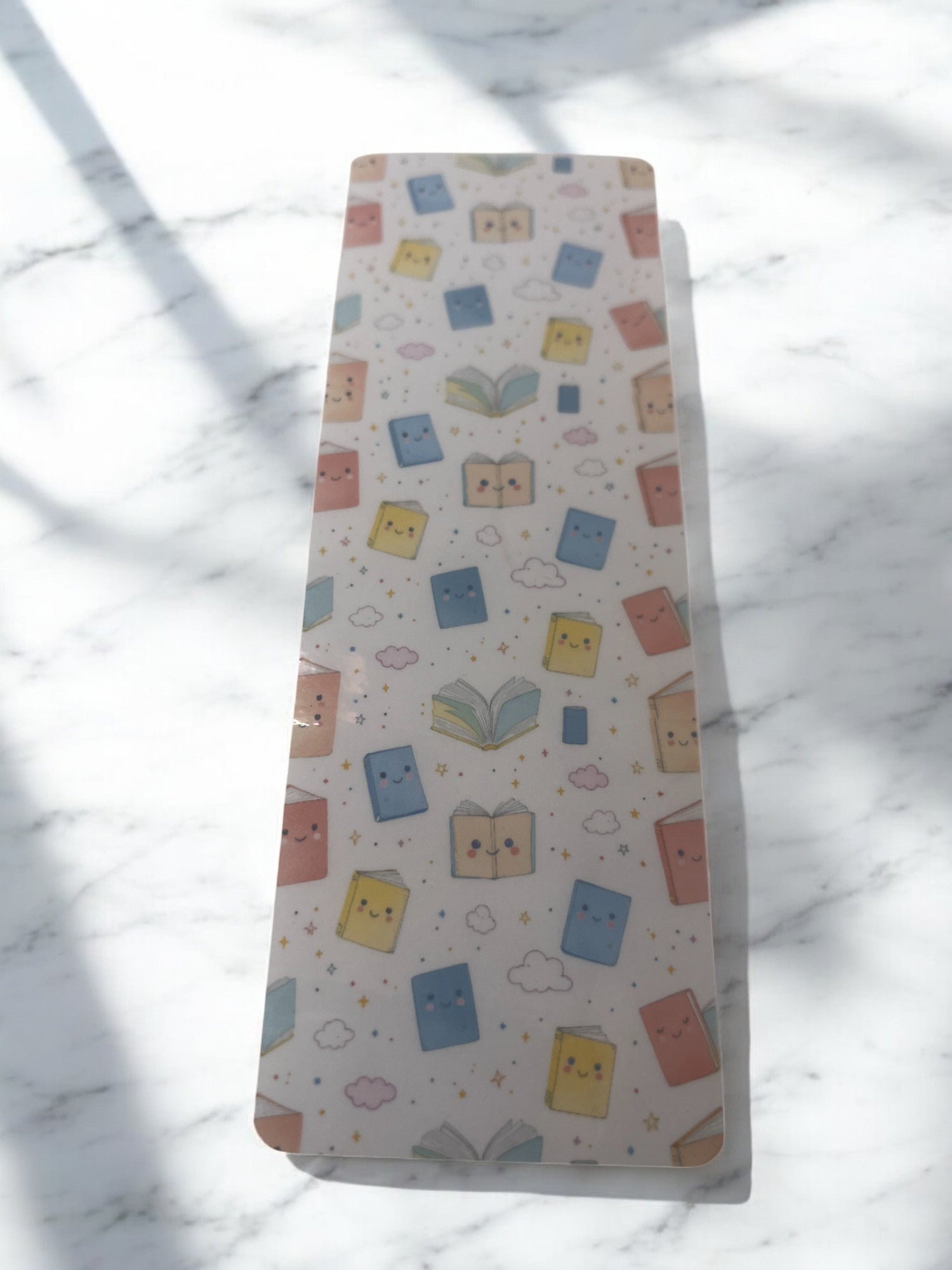 Adorable book pattern laminated bookmark.